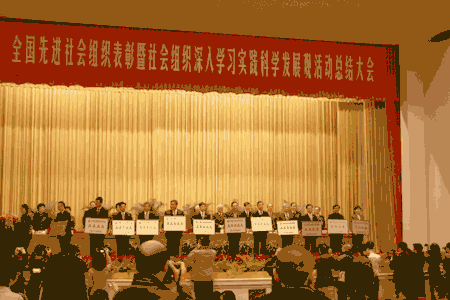 2月26日,民政部在人民大会堂隆重召开全国先进社会组织表彰暨社会组织深入学习实践科学发展观活动总结大会,这是继2004年对全国社会组织首次表彰之后的又一次全国范围的表彰活动,也是对全国社会组织学习实践科学发展观活动的全面总结。