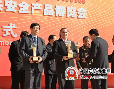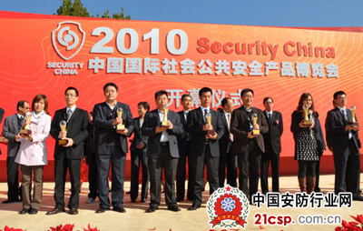 11月2日,继安博会开幕式后,第三届安博会创新产品颁奖典礼在开幕式台隆重举行,公安部科学技术委员会主任、中国安全防范产品行业协会名誉理事长李润森,公安部科技信息化局谢毅平局长,中国安全防范产品行业协会理事长柳晓川,公安部科技信息化局副局长谭晓准,中国安全防范产品行业协会副理事长廖晓村,中国安全防范产品行业协会副理事长司同军,中国安全防范产品行业协会副理事长、公安部第一研究所副所长陈朝武,中国安全防范产品行业协会副理事长兼秘书长靳秀凤、中国安全防范产品行业协会副秘书长李建平,中国安全技术防范认证中心主任赵锡廷出席颁奖仪式,并给获奖企业颁奖。