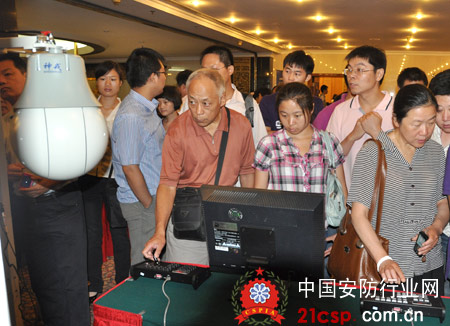 中国安防行业协会秘书长靳秀凤女士、铁道部运输处田裳高级工程师、山东神戎电子股份有限公司于明江总经理,刘豪副总经理等出席了发布会。于明江总经理介绍了神戎的发展以及其品牌定位和强大的技术实力;神戎专业技术人员向客户详细介绍了神戎的产品结构、技术优势、经典的应用案例。神戎的同步变焦技术、微调对准等专利性技术,吸引了客户极大的关注。