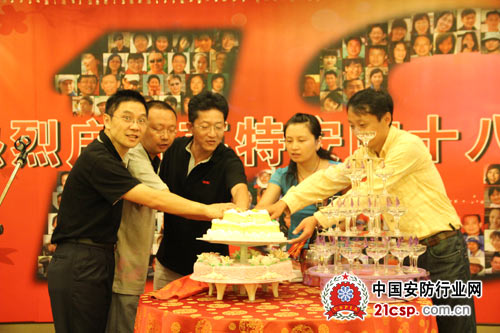 英特安防公司总部、龙岗工厂全体员工以及刚结束旅欧行程的各分支机构领导共计一百余人欢聚一堂,带着对公司的祝福,对未来的展望,共同庆祝属于英特安防的十八周岁生日。