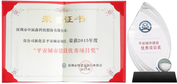 2015年12月29日,深圳市智慧安防行业协会暨深圳市安防产业标准联盟2015年度全体会员大会在深圳绿景锦江酒店盛大举行,深圳市中瀛鑫科技股份有限公司作为协会副会长单位出席此次会议。会上,还对参与平安城市建设的相关单位颁发了奖项,中瀛鑫荣获“2015年度平安城市建设优秀项目奖”。