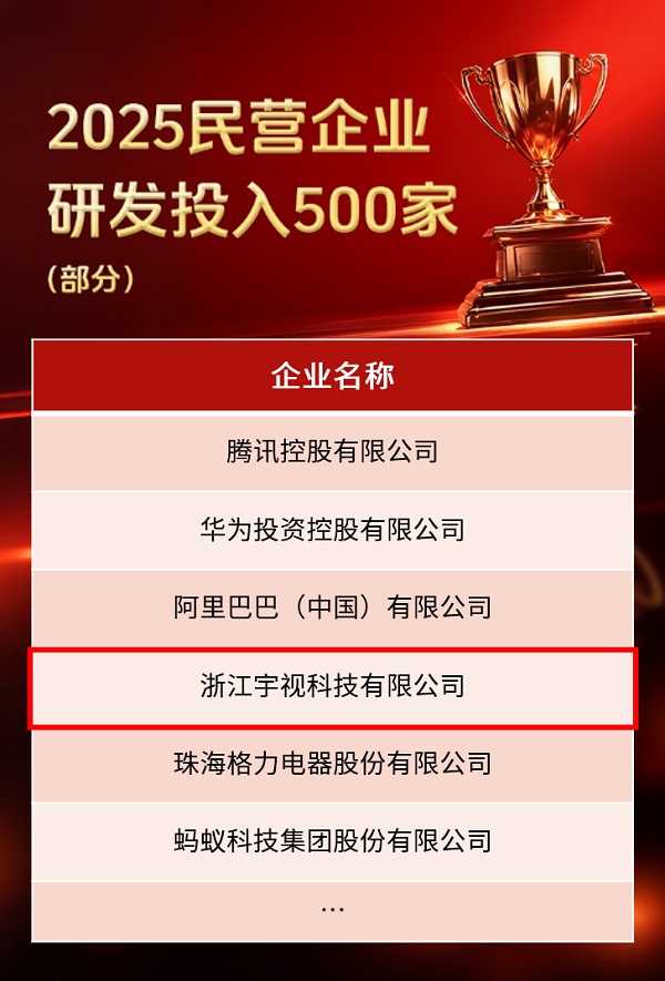 近日,中华全国工商业联合会发布“2025民营企业研发投入500家”和“2025民营企业发明专利500家”榜单,宇视科技(uniview)与腾讯、阿里巴巴、华为、新华三等知名企业共同入选,彰显了公司在技术创新和研发投入方面的雄厚实力。