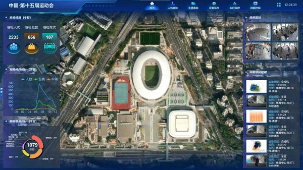 为应对大型活动安防的复杂需求,同方威视更在闭幕式及福田赛区主会场搭建了大型活动智慧安保管控平台。融合物联网、人工智能、数字孪生等前沿技术,平台对传统安检管理模式实现跨越式升级,将旅客流量、行李安检、现场环境、设备状态等安保全要素纳入“一图管控”,实现自动化监管、可视化调度、智能化预警,让安防决策更科学、响应更迅速,为盛会安全提供 “智慧大脑” 支撑。