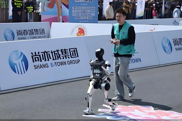 松延动力N2人形机器人征战半程马拉松赛 图片来源:北京商报