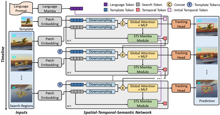 这是一个集成了空间(Spatial)、时间(Temporal)、语义(Semantic)学习的统一框架。其核心逻辑在于:利用Mamba(状态空间模型)的线性复杂度优势来建立视频级的长期上下文。