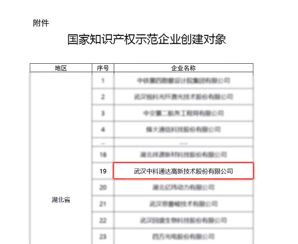 2026年1月12日,国家知识产权局公示2025—2027年知识产权强国建设示范创建对象评审结果,中科通达凭借在知识产权领域的深厚积淀与实践,成功入选国家知识产权示范企业创建对象,成为湖北省63家入选企业之一。