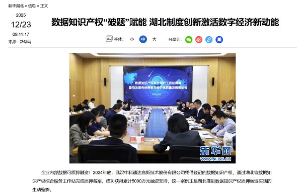 在知识产权运用与价值转化上,中科通达探索出了一条独具特色的创新之路。2024年,公司完成“企业项目全生命周期数据集”等3项数据知识产权登记,并创新推出“数据知识产权质押”,成功获得武汉农商行5000万元授信,成为湖北省首单数据知识产权质押融资项目,实现从“专利融资”到“数据融资”的跨越,为轻资产科技企业拓宽融资渠道提供了可复制、可推广的“光谷样本”,相关实践成果获得新华网专题报道。