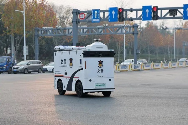 近日,安徽合肥街头悄然出现一道智慧执法新风景——一辆蓝白相间的“无人驾驶智能巡逻车”正在自主巡航,通过360度全景感知系统精准识别路面违法情况,并对违停车辆实时进行语音警示与短信提醒,同时自动检测并劝导非机动车驾乘人员未佩戴头盔等行为。作为合肥智慧警务建设的创新成果,该巡逻车由安徽清新互联信息科技有限公司(以下简称“清新互联”)与法务区联合创新实验室在“具身智能”领域联合打造。自合肥试点成功后,这一创新装备已陆续在全国多地交警、巡警部门落地应用,标志着其实现了从创新试点到规模化产品应用的跨越。